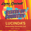 Laura Cantrell's "States of Country"Miércoles Diciembre 03, 2025 6:30 PM - Diciembre 03, 2025 8:30 PM Lucindas New York, NY Country singer Laura Cantrell and guests explore country songs from across the great 50 states. |