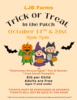 LJB Pumpkin Patch Trick Or Treat Bash - October 21stMartes Octubre 21, 2025 5:00 PM - Octubre 21, 2025 7:00 PM LJB Farms San Martin, CA Join Us for our Trick-or-Treat Event at LJB Farms |