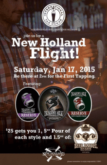 *New Holland Dragon's Milk (traditional) will also be available for purchase, but not included in the $25 tasting.'