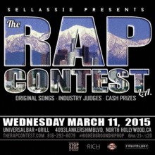 The Rap Contest is a Nation-Wide Original Song Contest started in 2010 by Sellassie and Inhouse Talent in San Francisco, CA. The Rap Contest has stopped in more than 12 cities from coast to coast including Los Angeles, New York, San Francisco, Berkeley, Chicago, DC, Atlanta, Austin, Houston, Orlando & Seattle.