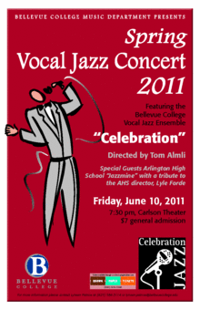 Thomas Almli will be directing the BC Celebration Vocal Jazz Ensemble. Special Guest is Arlington High school "Jazzmine" with a tribute to the AHS director Lyle Forde as he retires this year.