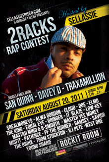Inhouse Talent Presents 2Racks Rap Contest Hosted by Sellassie Judges Panel with San Quinn, Davey D and Traxamillion Saturday August 20, 2011 Rockit Room 406 Clement St, San Francisco 8:00pm/$10/21+