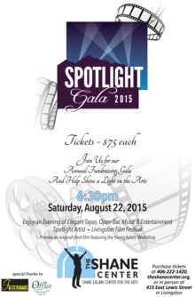 The Shane Lalani Center for the Arts in Livingston will hold its annual Spotlight Gala on Saturday August 22nd beginning at 6:30 pm. This year's gala shines a light on the Livingston Film Festival and all the fascinating filmmaking happening in our community.