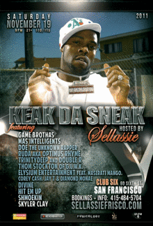 INHOUSE TALENT announces Rap Pioneers, a new Hip Hop Showcase series featuring headliners that have been pioneering in Hip Hop. The Series kicks off on Nov 19, 2011 with Keak Da Sneak in San Francisco. Presented by Inhouse Talent and hosted by Revolutionary Poet Sellassie, RAP PIONEERS is designed to pay homage to innovative talent while exposing new talent to build community. RAP PIONEERS is a place to discover some new music you just might like and mightn't hear elsewhere.