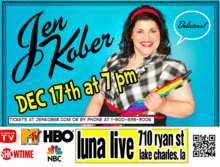 Originally from Lake Charles, LA - Jen Kober has bounded onto the national stage bringing crowds to their feet with her original blend of stand-up, story telling, and improvised rock-n-roll comedy. Her hard-hitting hour is phenomenally funny as Kober commands the stage and dares you not to laugh.