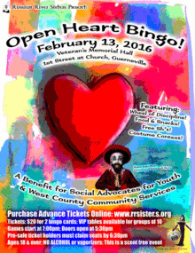 The Russian River Sisters of Perpetual Indulgence are proud to present a night of fun, fundraising and frivolity as only the Sisters know how to. This is not like any other Bingo game you've ever been to. Picture your Grandmother's church hall bingo crossed with the Rocky Horror Picture Show, and the Sisters in their best drag-nun attire.