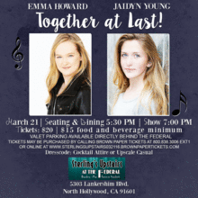 Emma Howard ("Matilda) and Jaidyn Young ("Annie") join forces in the west coast premiere of Together At Last!... an intimate cabaret concert featuring the stories songs of their lives as up-and-coming starlets on the Great White Way.