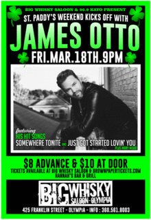 JAMES OTTO returns to the Pacific Northwest and will be rocking BIG WHISKY SALOON OLYMPiA in OLYMPIA, WA March 18th.9PM!