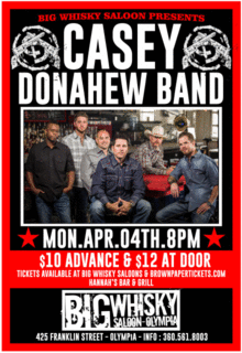 We're excited to have the CASEY DONAHEW BAND coming to the Pacific Northwest & rocking BIG WHISKY SALOON OLYMPiA in OLYMPIA, WA on MONDAY.APRIL.04TH.8:00PM!
