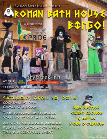 The Russian River Sisters of Perpetual Indulgence are proud to present a night of fun, fundraising and frivolity as only the Sisters know how to. This is not like any other Bingo game you've ever been to. Picture your Grandmother's church hall bingo crossed with the Rocky Horror Picture Show, and the Sisters in their best drag-nun attire.