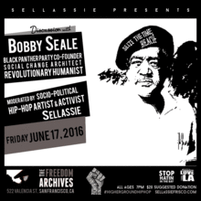 Socio-Political Hip Hop Artist and Activist Sellassie sits down with Black Panther Party co-founder Bobby Seale in an intimate setting and asks the questions the community wants to hear. Subjects ranging from modern day social movements, galvanizing the power in the ghetto, the 2016 Presidential election and the future of the Black Panther Party. The event will be held at Freedom Archives, an impressive organization and event space that has organized and archived 10,000 hours of audio and video recordings and thousands of documents about social justice movements locally, nationally and internationally from the 1960s to present. The Archives feature speeches of movement leaders and community activists, protests and demonstrations, cultural currents of rebellion and resistance.