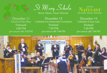 Concert will be performed in Falmouth and twice in Portland at the Cathedral of the Immaculate Conception and the Cathedral of Saint Luke.