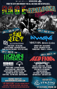 Day 1 - August 18 - 4:30pm / $10 adv / $15 dos The Fall of Troy 68 Illustrations Ghost Heart The Hallows A Cryptic Ending Prevailing Existence Danny the Skeleton Horse Fed to the Flames