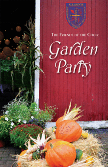 The Friends of the Choir of The Cathedral of All Saints welcomes you at their annual Garden Party to benefit The Cathedral Choir of Men and Boys. The party will be held at The Buhrmaster Barn at The Historic Pruyn House in Latham, New York on 2 October from 24p.m. The Choir of Men and Boys will sing for the gathering. Admission is $40 for adults and $25 for seniors and students. Children under 12 are admitted free of charge.