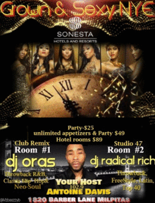 THE BAYS ULTIMATE OLD SCHOOL THROWBACK NYE IS BACK 2 CLUBS IN 1 CLUB REMIX AND STUDIO 47 ANTOINE DAVIS OF KBLX SONESTA HOTEL IN MILPITAS 1820 BARBER LN. https://newyearsremix.bpt.me HOTEL ROOMS $89 THE LAST ONE WAS GREAT!!!