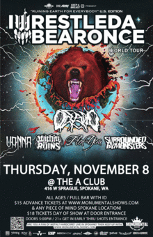 IWRESTLEDABEARONCE, OCEANO, VANNA, WITHIN THE RUINS, THE PLOT IN YOU and SURROUNDED BY MONSTERS come to Spokane, WA to rock an all ages crowd to warm you from the winter's fury with some in-your-face metal shenanigans!