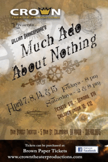 Please join Crown Theater Productions in "Much Ado About Nothing" live on stage at Main Street Theater! Directed by Carla Sukosd