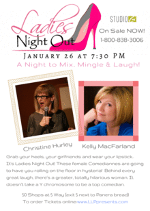 We have some hysterical female comics for you! Christine Hurley and Kelly MacFarland! These female Comediannes are going to have you rolling on the floor in hysteria! Behind every great laugh, there's a greater, totally hilarious woman:it doesn't take a Y chromosome to be a top comedian. As seen on Last Comic Standing, Comix, Nantucket Comedy Festival, Comics COme Home and comedy clubs from Boston to California!