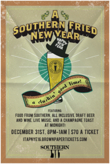 Your $70 ticket includes open DRAFT BEER and WINE Bar, Music, and food by Southern! That's right, 61 taps to drink from all night long and the best fried chick + sides in town! We'll also have a band all night long and a champagne toast at midnight!