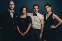Bill and the Belles are: Kris Truelsen (guitar, vocals) , Grace Vant Hof (banjo, banjo ukulele, vocals) , Kalia Yeagle (fiddle, guitar, vocals) , and Karl Zerfas (bass)