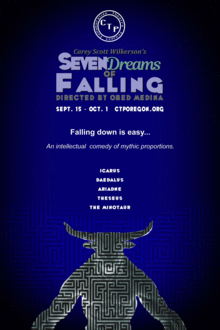 A re-thinking of the Icarus myth. It's late in the post-modern day and Icarus has grown weary of falling out of the sky over and over again. Having decided it's time for a career change, he plots his escape from a cycle of doomed repetition even as family and friends find themselves struggling with the idea of letting go. Can Icarus simply fly out of his own life? And if he can, what does that mean for those he leaves behind: Daedalus, a father for whom rules, rituals and quantum mechanics are sacred; Theseus, a fading hero -- who goes down in history as a monster-slayer; Ariadne, the hero's former flame, the monster's half-sister and Lesbian cultural-critic; and the monster himself, The Minotaur, who holds a secret that could destroy them all...or set them free. It's a comedy of mythic proportions.