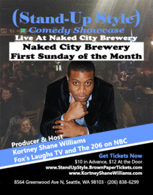 (Stand-Up Style) is a monthly comedy showcase that takes place the first weekend of every month at Naked City Brewery & Taphouse in Greenwood, Seattle.