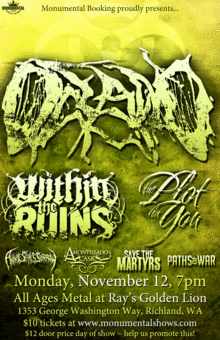 Oceano, Within The Ruins and The Plot In You come to Richland, WA for an all ages show on November 12 with local openers Annie Sails Sorrow, Armontillado's Cask, Save The Martyrs and Paths of War!