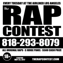 Los Angeles: The Rap Contest returns to Los Angeles on Sat June 3, 2017 and announces the start of the series' weekly event, every Tuesday at the Airliner. The Rap Contest is a live original song competition series started in 2010 by Sellassie with Inhouse Talent. The event is a platform for independent artists and has showcased some of the top upcoming talent you don't know yet. The Rap Contest has stopped in more than 20 cities from coast to coast including Los Angeles, New York, San Francisco, Berkeley, Chicago, Washington D.C., Atlanta, Austin, Houston, Orlando & Seattle.