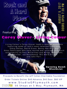 Some of rocks most talented musicians come together on stage for one show only with an appearance by ROCK AND A HARD PLACE, a veteran ensemble led by Living Colours Corey Glover. The band also features Steve Holleu, David Gross, Benny Harrison and Amos Sanfilippo who have toured and recorded with such rock nobility as Paul McCartney and Wings, Elton John, Joe Cocker, Bill Ward Project and the legendary Chuck Berry.