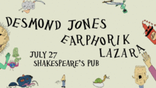 Thursday, July 27th Desmond Jones and Earphorik return to Shakespeares Lower Level, along with newcomers, Lazara!