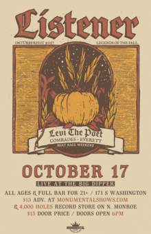 Monumental Shows brings Listener back to the Big Dipper! They're bringing Levi The Poet and Comrades on their 'Legends of Fall' tour. Also on the bill is Medford, Oregon's Everett