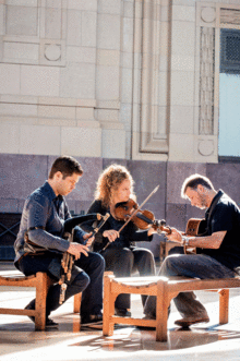 Open the Door for Three is a trio that plays its Irish music powerfully. They mine tune books, collections, and recordings for old and new tunes and songs. They add to those discoveries fiddler Liz Knowless compositions, harmonies, and arrangements, Kieran OHares encyclopedic knowledge of tunes and the uilleann piping tradition, and the rhythmic bedrock bouzouki and world-class singing of Dublin-born Pat Broaders. The trio's members are veterans and mainstays of the Irish music scene around the world, having played with Riverdance, Cherish the Ladies, Secret Garden, Anúna, Liz Carroll, and The New York Pops, as well as with artists like Don Henley, Paula Cole, Bonnie Raitt, and Josh Groban. They have performed around the world: on Broadway, at Carnegie Hall and the Kennedy Center, at L'Olympia and the Palais des Congrès in Paris, in Malaysian rainforest festivals, in theatres from Shanghai to São Paulo, and even a bullring in Mallorca. Their debut release Open the Door for Three followed by The Penny Wager and now their brand new third CD The Joyful Hour are the culmination of years on the road, comprised of unearthed tunes, new arrangements of great songs, homages to the musicians and bands they grew up listening to, and the signature sound of a trio of good friends playing great music together. We are privileged to present this trio for a fine night of traditional Irish music as part of our Phinney series!