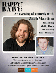 "HAPPY BABY" Comedy Showcase: Zach Martina, Matty Ryan, Tom E. Thompson, Aaron Putnam