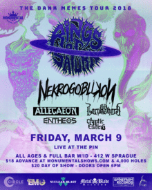 RINGS OF SATURN https://www.facebook.com/RingsofSaturnband/ NEKROGOBLIKON https://www.facebook.com/nekrogoblikon/ ALLEGAEON https://www.facebook.com/Allegaeon/ LORNA SHORE https://www.facebook.com/LornaShore/ ENTHEOS https://www.facebook.com/entheosband/ A CRYPTIC ENDING https://www.facebook.com/acrypticending/