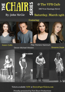 She is so excited to be a part of the Chair Series Workshop and perform with three other incredible actors.