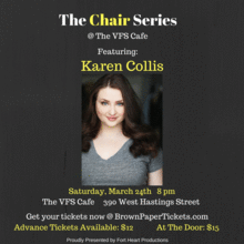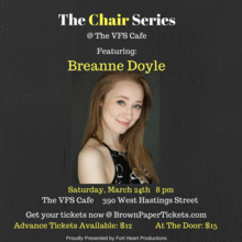 Breanne Doyle is originally from a small town in New Brunswick, and a Vancouver-ite since 2015, Breanne has appeared in multiple short film projects, as well as this season's Untold Series of the ER. You can next catch her in a soon-to-be-released music video by the Vancouver-based musician, Corbin Hale. Breanne is very excited to be a part of The Chair Series tonight.