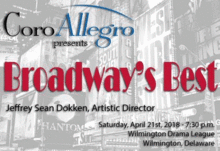 Offering selections from both classic and contemporary shows, the singers will be joined by Wilmington native soprano Kelly Curtin and Helen Hayes award-winning baritone Alan Naylor.