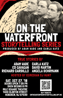 The On the Waterfront Storytelling series is BACK with ANOTHER SHOW! This hilarious and moving storytelling show, produced by Hobokenites Adam Wade and Carla Katz, brings back the best of the NYC storytelling scene to Hoboken for another night of funny and moving true stories and comedy.