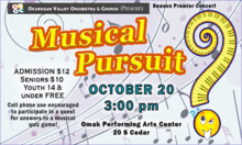 The concert is planned as an audience participation event, a musical quiz that will keep you engaged as you go on this Musical Pursuit. Not a musical trivia buff? No problem, says OVOC Publicist, Judy Johnston. Quiz questions are designed to let the music give you the answers, those delicious AHA moments that are so fun. Audience members who wish to participate may use cell phones to access the simple app that allows them to play along by choosing among multiple choice possibilities shown on the projection screen. Directions will be given at the concert and it is promised to be easy even for the technologically challenged!! We have the most fun at our concerts when the audience is actively engaged. Young people who play along will learn some interesting facts and we know everyone will walk away with a smile, especially the winners of some great prizes! Matt Brown and Jonathan McBride, musical directors for the orchestra and chorus, have chosen an eclectic mix of music. The chorus will perform a Chopin Prelude, a Beethoven spoof called Beethovens Wig, a choral piece from HMS Pinafore, the rock anthem Bohemian Rhapsody, plus some modern movie music from La La Land and The Lord of The Rings. The orchestra will perform Hall of the Mountain King from Peer Gynt Suite, Mars from The Planets, Sleeping Beauty Waltz and March to the Scaffold by Berlioz.