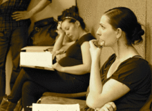 The geometrically inspired set incorporates sharp angular set pieces and makes use of an enclosed stage space with nine rectangular exits and entrances; creating a visceral, cerebral, design that pulls the audience into the world of the play and into the inner mind of each character. Director and Producer Nicole Schalmo's backdrop of a modern dystopian monarchy immerses the audience in the political intrigues of Claudius and Gertrude, haunts us with Ophelia's heartbreak and Laertes' rage, and brings us to the heart and soul of Hamlet's quest for answers, justice, and vengeance.