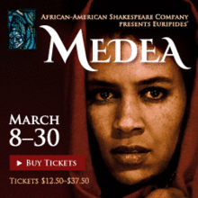 Passion. Love. Vengeance. African-American Shakespeare Company continues its 19th season with MEDEA, Euripides' infamous Greek tragedy about a jilted wife exacting the ultimate revenge on a cheating husband. After a long series of trials and adventures, Greek hero Jason has abandoned his wife, Medea, along with their two children, in the hopes of advancing his station by marrying the daughter of King Creon. Jason's abandonment of his family crushes Medea, driving her to override her maternal instincts and curse the existence of their two children, and carry out an unimaginable quest for justice. Denise Woods, former voice and speech instructor at California Institute of the Arts, directs.
