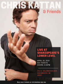 Chris Kattan & Friends will be performing standup live at Shakespeares Lower Level in Kalamazoo, MI Tuesday, April 16th.