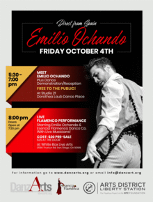 DanzArts La Esencia Flamenca Dance Company will be hosting world renowned and award-winning 'amenco dancer,Emilio Ochando. Emilio has been the recipient of several major awards including but not limited to First Place in Talent Madrid 2016 in the dance category, First place in the international dance competition of Spanish dance and Flamenco in the city of Almeria, as well as as several awards for his group numbers in the Emilio Ochando Dance Company. Also, DanzArts-La Esencia Flamenco Dance Co and live musicians will be part of this showcase
