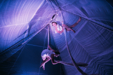 Inspired by the idea of creating community in trying times, Brave Space starts as a puddle of fabric on the floor, and grows to encompass a world of wonders that includes juggling, cyr wheel, and duo trapeze, a rope act like no other, and awe-inspiring feats of balance and strength. The audience is limited to 100 people per show, and audience members must be able to sit on the floor, stand up, walk around for the duration of the performance. Audience members requesting assistance, or a chair to sit in, should note so when purchasing tickets. In addition, Brave Space may make persons suffering from claustrophobia feel uncomfortable at times.