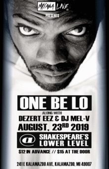 FRIDAY, August 23rd 2019 Mixana Live Presents: One Be Lo wsg: Dezert Eez & DJ Mel-V @ Shakespeare's Lower Level