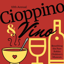 Cioppino & Vino is a Food and Wine event that benefits the Paso Robles Children's Museum. Cioppino & Vino will be held Sunday, October 13th from 1pm to 4pm at the Paso Robles Inn and will feature cioppino and wine tasting from local chefs and wineries plus live and silent auctions, live music and more.