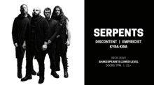 Doors: 7:00 Show: 8:00 21+ $5 cover ___________________________________________________________________ + Serpents - U.S. Chicago, IL https://weareserpents.bandcamp.com/