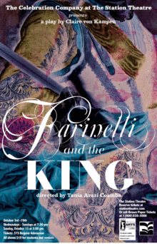 Set in Spain at the court of King Philippe V, this whimsical and imaginative play is based on the real life encounter between Philippe and the celebrated castrato Farinelli (Carlo Broschi). When Philippe appears unfit to rule his kingdom, his wife Isabella Farnese, the Queen of Spain, seeks the help of the famous opera singer, Farinelli, in the hopes that the power of music will help restore her husbands sanity.