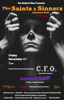 The Ballard Elks presents "The Saints & Sinners / Day of the Dead Costume Ball" on Friday, November 1st.