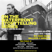 On the Waterfront Storytelling series is BACK with ANOTHER TERRIFIC SHOW! This hilarious and moving storytelling show, produced by Hobokenites Adam Wade and Carla Katz, brings back the best of the NYC storytelling scene to Hoboken for another night of funny and moving true stories and comedy.